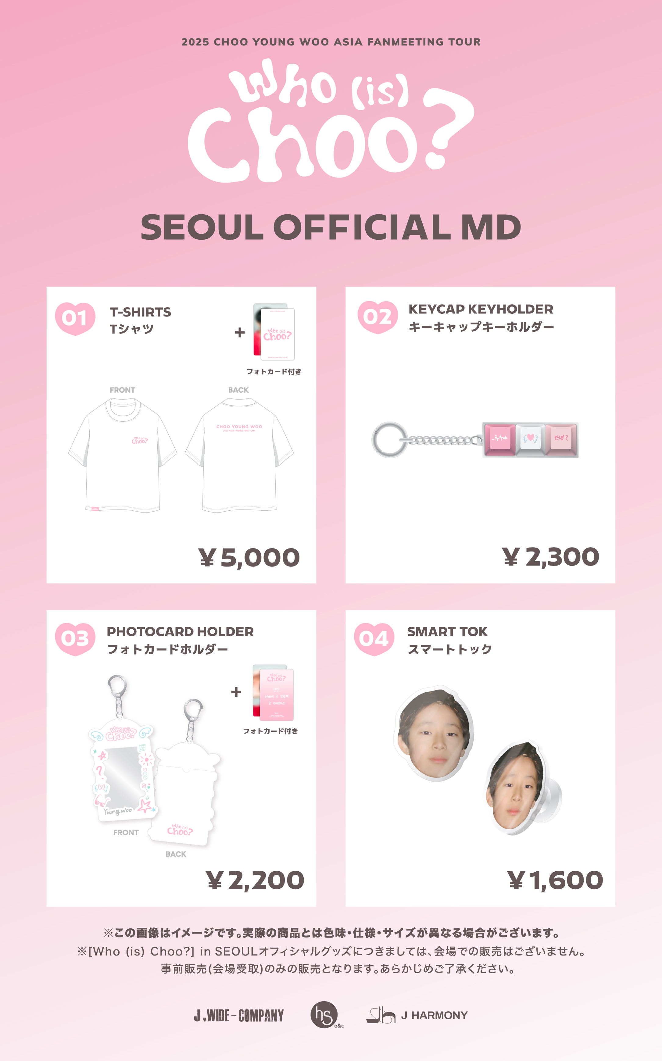 『2025 CHOO YOUNG WOO ASIA FANMEETING TOUR [Who (is) Choo?] in JAPAN』オフィシャルグッズの事前販売(会場受取)についてご案内いたします。