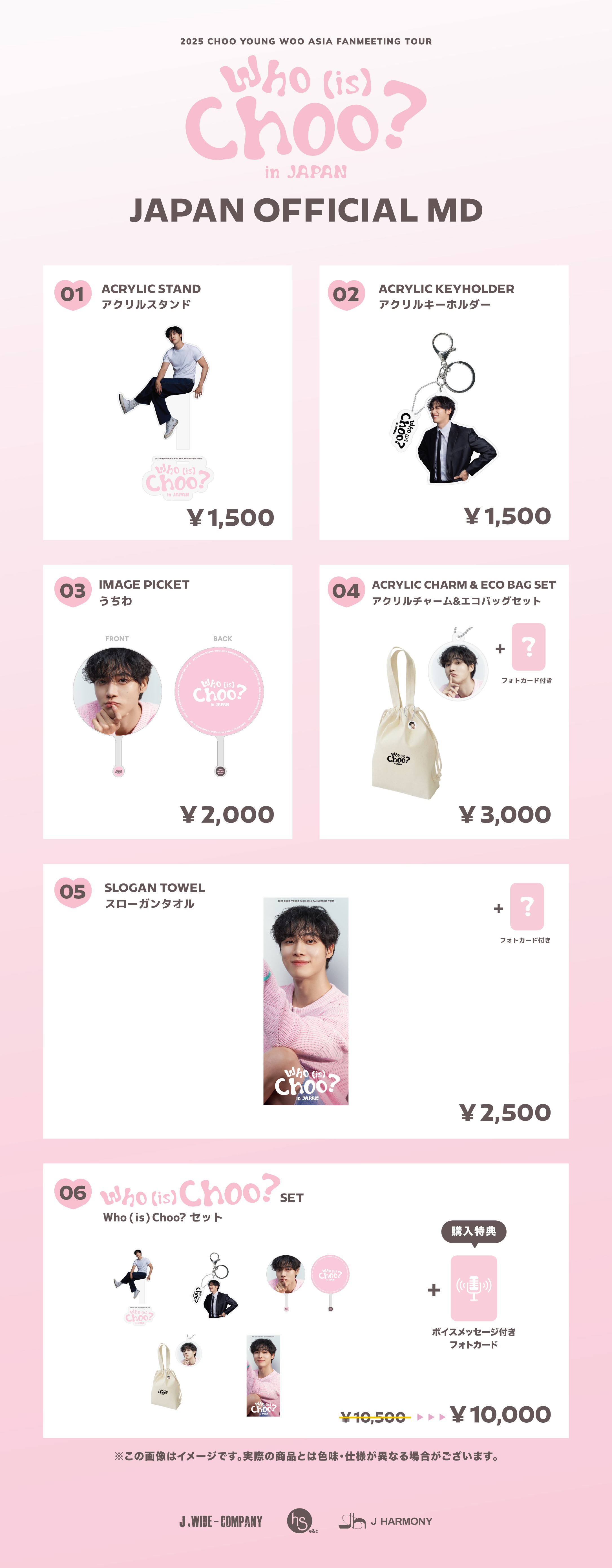 『2025 CHOO YOUNG WOO ASIA FANMEETING TOUR [Who (is) Choo?] in JAPAN』埼玉公演オフィシャルグッズ会場販売および事前販売(会場受取)の詳細をご案内いたします。